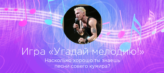 Играйте, выигрывайте, рассказывайте друзьям о своих достижениях! Только эта игра позволяет узнать насколько хорошо вы знаете песни любимого исполнителя.