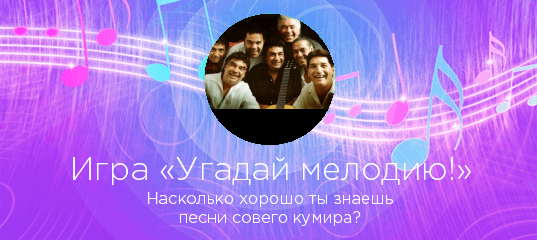 «Угадай мелодию!» — увлекательная игра по мотивам всем известной передачи. Выбираете любого исполнителя на нашем сайте и если у нас представлено достаточно песен этого артиста или группы, вы можете сыграть в игру «Угадай мелодию!».