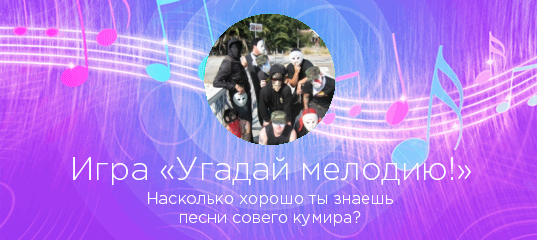«Угадай мелодию!» — увлекательная игра по мотивам всем известной передачи. Выбираете любого исполнителя на нашем сайте и если у нас представлено достаточно песен этого артиста или группы, вы можете сыграть в игру «Угадай мелодию!».