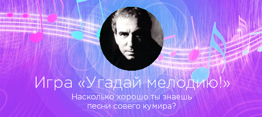 «Угадай мелодию!» — захватывающая игра по мотивам всем известной передачи! Выбирайте любого исполнителя на нашем сайте, и если у нас есть достаточное количество его песен, вы сможете проверить, насколько хорошо знаете любимые хиты в «Угадай мелодию!».