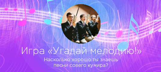 «Угадай мелодию!» — захватывающая игра по мотивам всем известной передачи! Выбирайте любого исполнителя на нашем сайте, и если у нас есть достаточное количество его песен, вы сможете проверить, насколько хорошо знаете любимые хиты в «Угадай мелодию!».