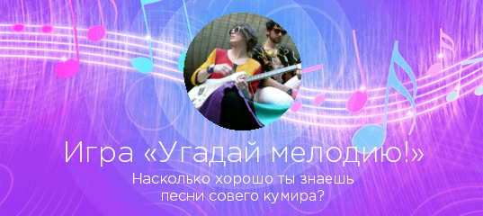 «Угадай мелодию!» — увлекательная игра по мотивам всем известной передачи. Выбираете любого исполнителя на нашем сайте и если у нас представлено достаточно песен этого артиста или группы, вы можете сыграть в игру «Угадай мелодию!».