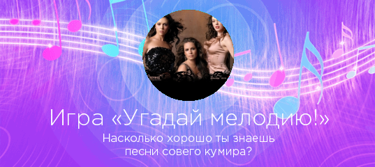«Угадай мелодию!» — увлекательная игра по мотивам всем известной передачи. Выбираете любого исполнителя на нашем сайте и если у нас представлено достаточно песен этого артиста или группы, вы можете сыграть в игру «Угадай мелодию!».