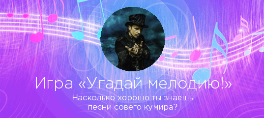 «Угадай мелодию!» — захватывающая игра по мотивам всем известной передачи! Выбирайте любого исполнителя на нашем сайте, и если у нас есть достаточное количество его песен, вы сможете проверить, насколько хорошо знаете любимые хиты в «Угадай мелодию!».
