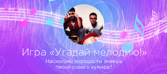«Угадай мелодию!» — захватывающая игра по мотивам всем известной передачи! Выбирайте любого исполнителя на нашем сайте, и если у нас есть достаточное количество его песен, вы сможете проверить, насколько хорошо знаете любимые хиты в «Угадай мелодию!».
