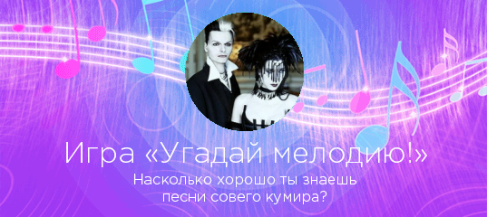 «Угадай мелодию!» — захватывающая игра по мотивам всем известной передачи! Выбирайте любого исполнителя на нашем сайте, и если у нас есть достаточное количество его песен, вы сможете проверить, насколько хорошо знаете любимые хиты в «Угадай мелодию!».