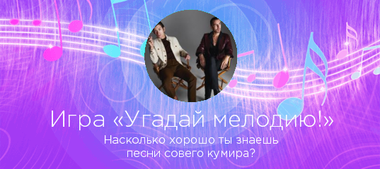 «Угадай мелодию!» — захватывающая игра по мотивам всем известной передачи! Выбирайте любого исполнителя на нашем сайте, и если у нас есть достаточное количество его песен, вы сможете проверить, насколько хорошо знаете любимые хиты в «Угадай мелодию!».