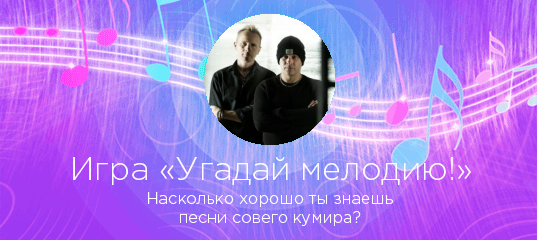 «Угадай мелодию!» — захватывающая игра по мотивам всем известной передачи! Выбирайте любого исполнителя на нашем сайте, и если у нас есть достаточное количество его песен, вы сможете проверить, насколько хорошо знаете любимые хиты в «Угадай мелодию!».