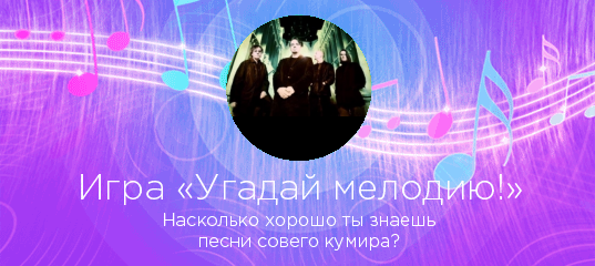 «Угадай мелодию!» — захватывающая игра по мотивам всем известной передачи! Выбирайте любого исполнителя на нашем сайте, и если у нас есть достаточное количество его песен, вы сможете проверить, насколько хорошо знаете любимые хиты в «Угадай мелодию!».