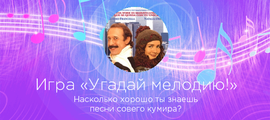 «Угадай мелодию!» — захватывающая игра по мотивам всем известной передачи! Выбирайте любого исполнителя на нашем сайте, и если у нас есть достаточное количество его песен, вы сможете проверить, насколько хорошо знаете любимые хиты в «Угадай мелодию!».